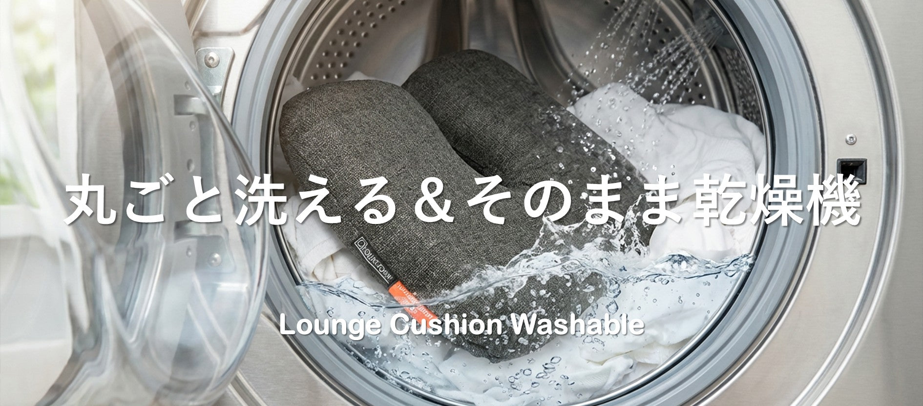 ラウンジクッションウォッシャブルは、カバーを外さずそのまま洗濯・乾燥が可能。