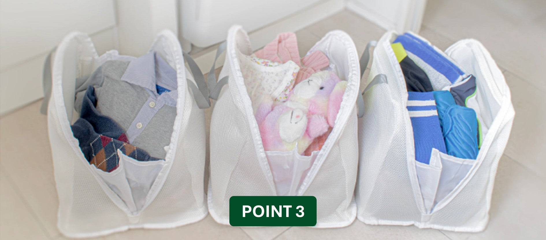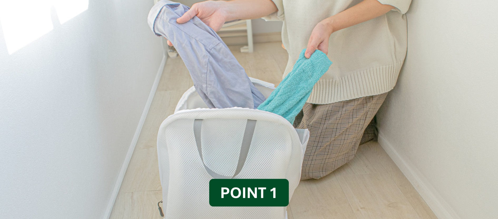 ・ 衣類はバッグ内容量の6割(約7ℓのうち4ℓ程度)までを推奨します。入れ過ぎると洗浄力・乾燥性・絡み防止効果が低下します。