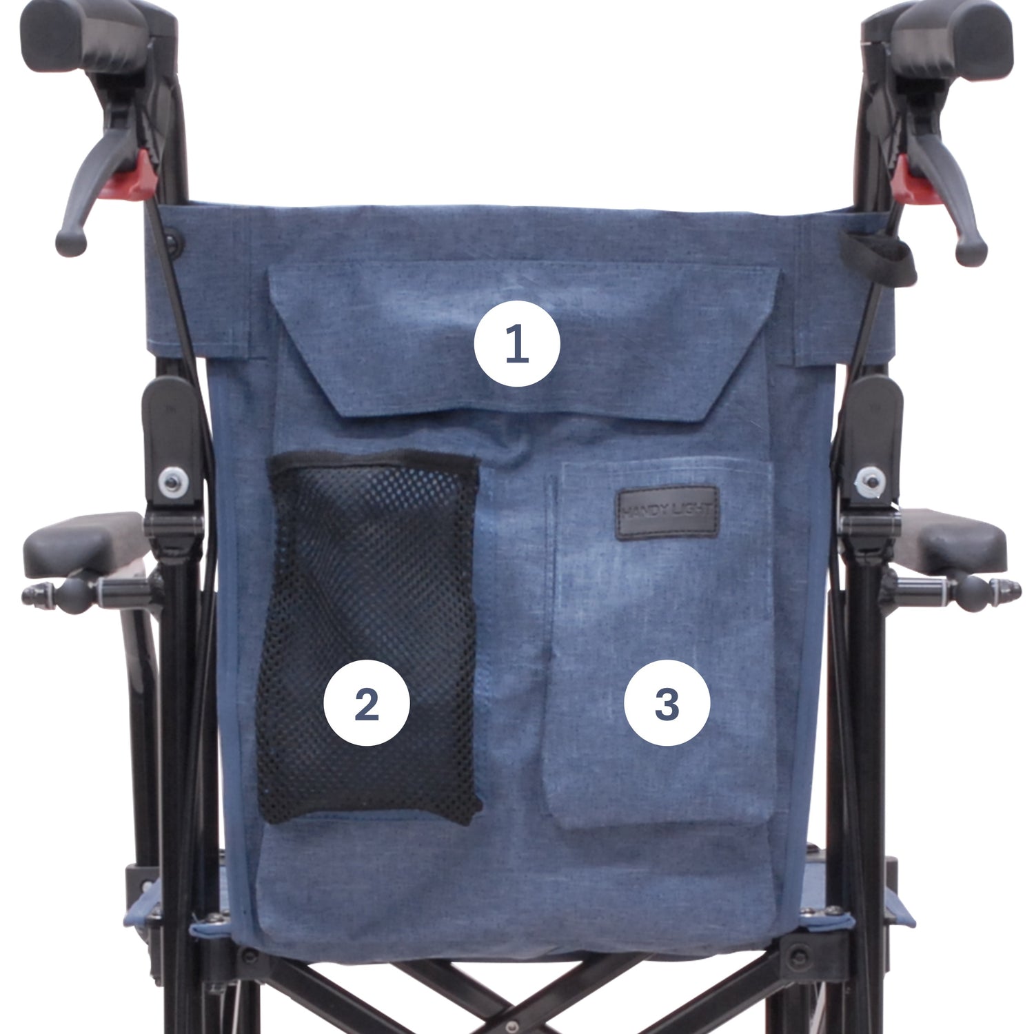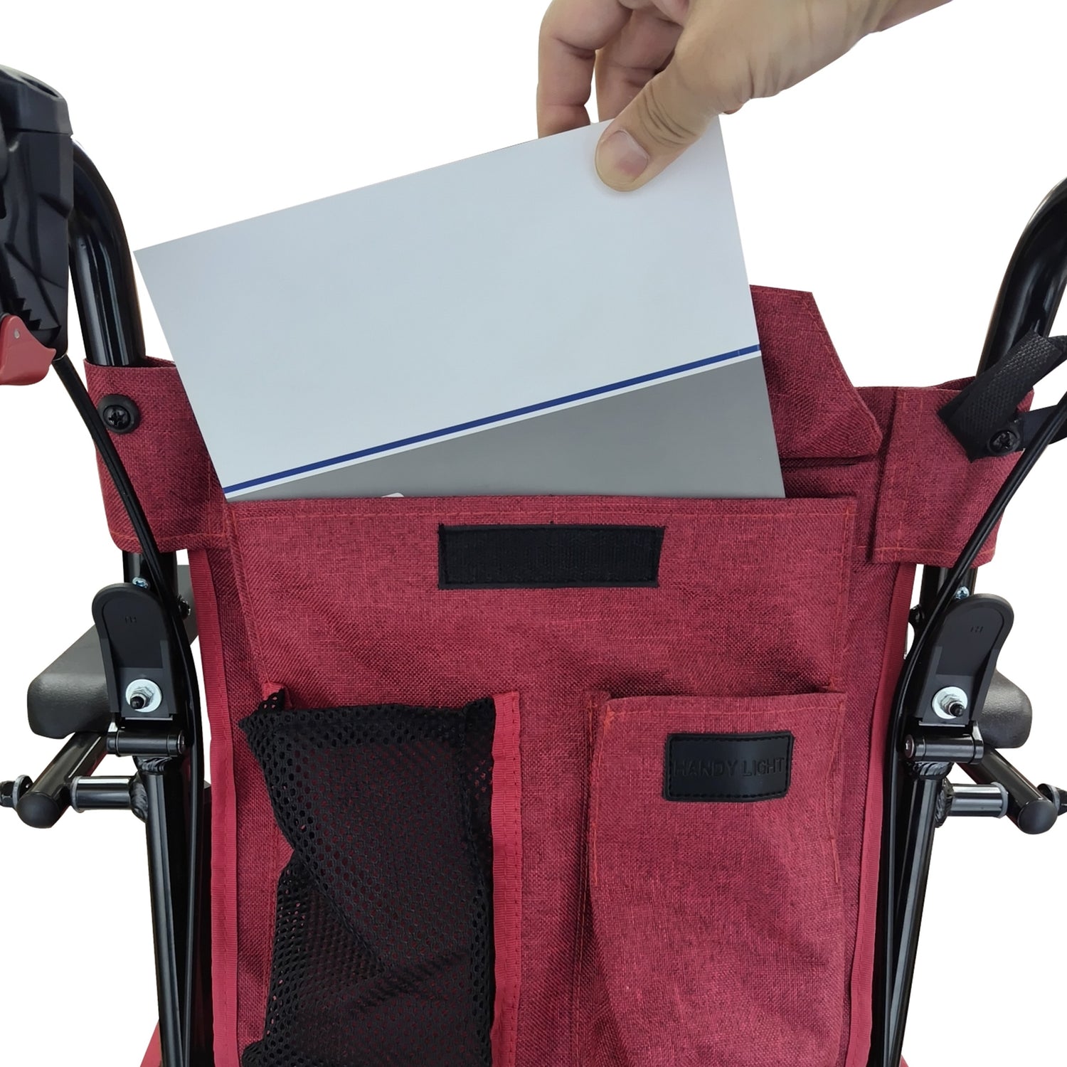 スマートフォン、お財布、鍵などの小物はもちろん、雑誌や書類なども整理して収納できる3つのポケットを背面に配置。車いすでのお出かけも、手荷物を気にせず身軽に楽しめます。