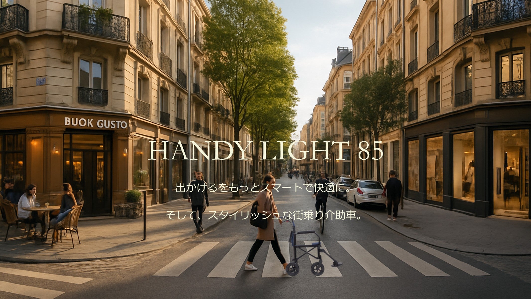 超軽量・超コンパクトで、遠方への旅行や公共交通機関での移動を革新した「ハンディライトプラス」。その優れた機動性を引き継ぎながら、「もっと日常の街中で快適に、便利に、そしてスタイリッシュに使いたい」という声に応えて誕生したのが、この「ハンディライト85」です。