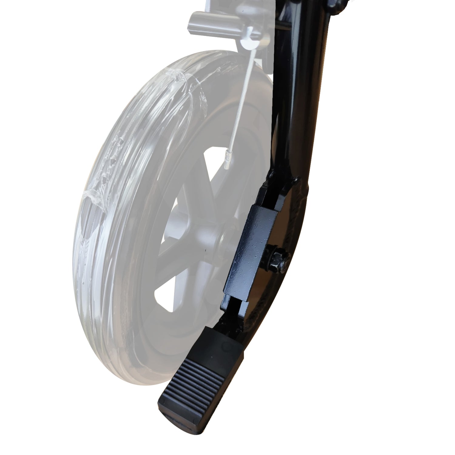 介助者が足で軽く踏み込むことで、前輪が持ち上がり、歩道との段差や玄関の敷居などもスムーズに乗り越えられます。介助者の負担を劇的に軽減し、行動範囲を広げます。