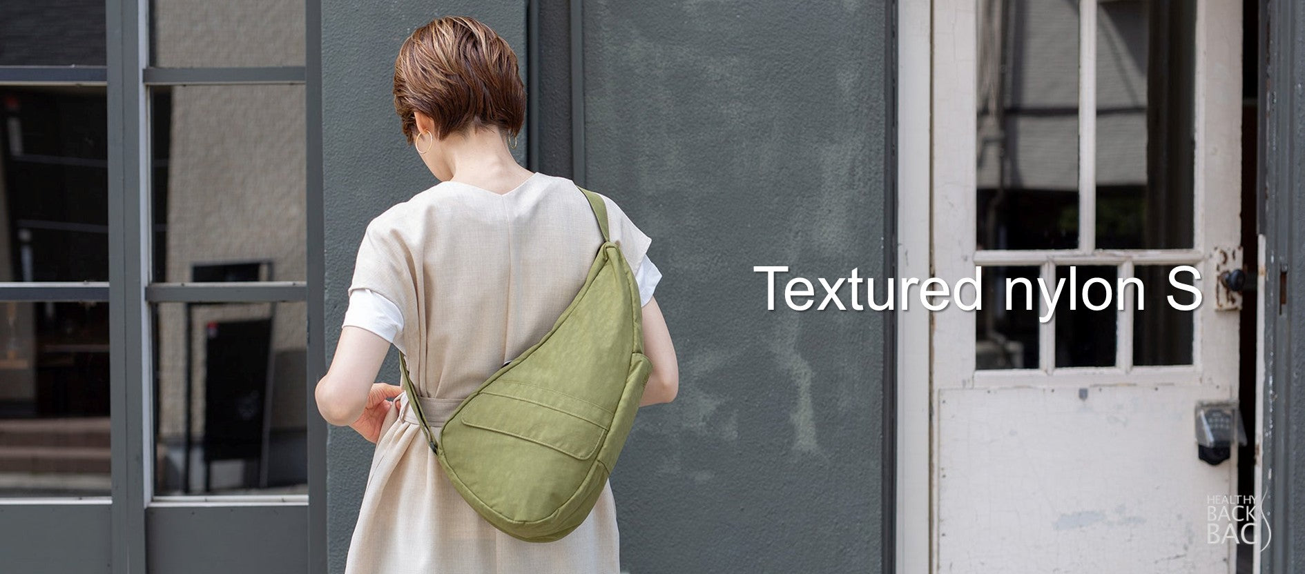 背中にぴたり、荷物はふわり――「ヘルシーバックバッグ S テクスチャードナイロン バンブーフォレスト」は〈しずく型×12ポケット〉で“軽さ”を体感できる人間工学ショルダーバッグです。