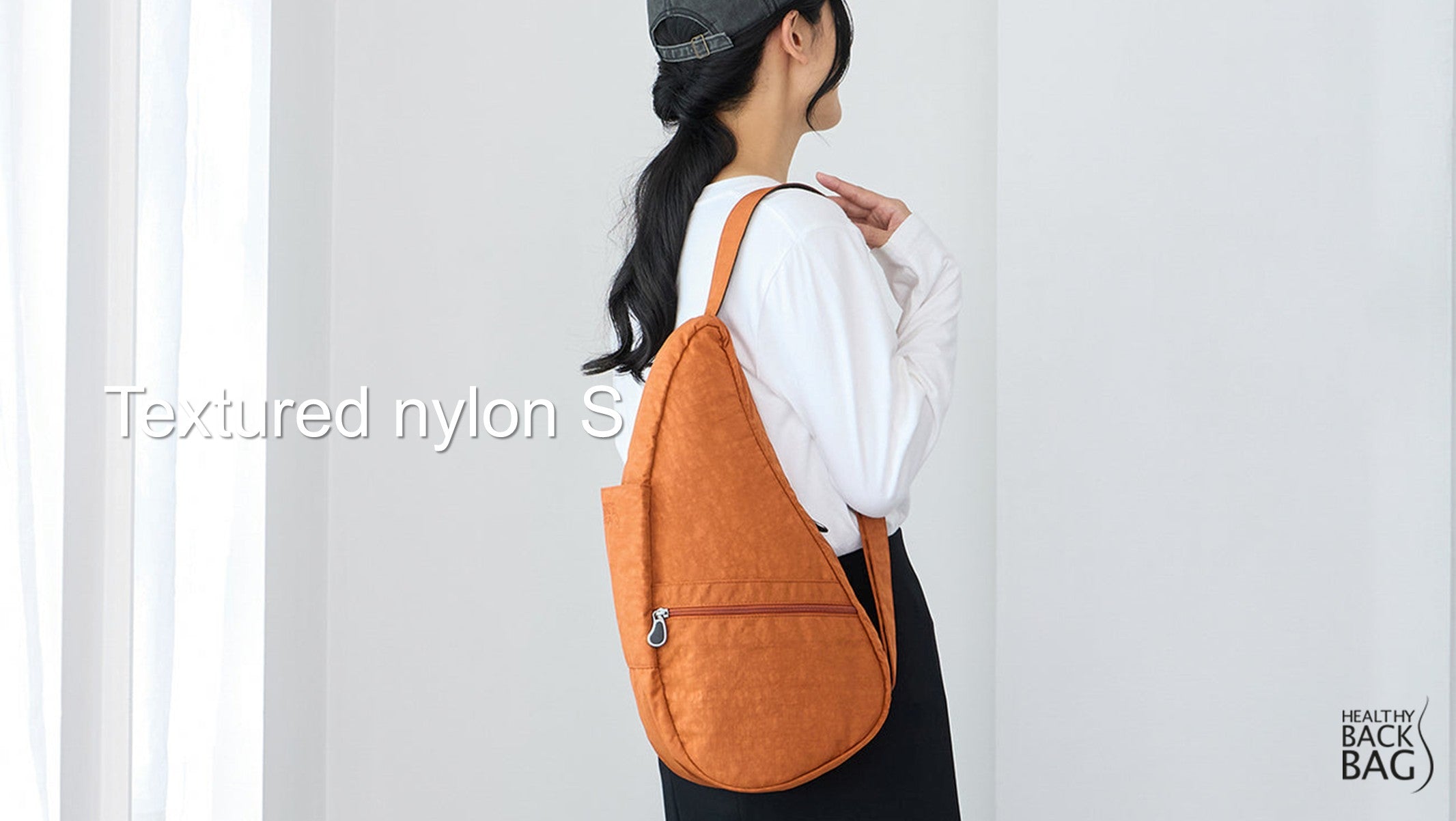 背中にぴたり、荷物はふわり――「ヘルシーバックバッグ S テクスチャードナイロン パンプキン」は〈しずく型×12ポケット〉で“軽さ”を体感できる人間工学ショルダーバッグです。