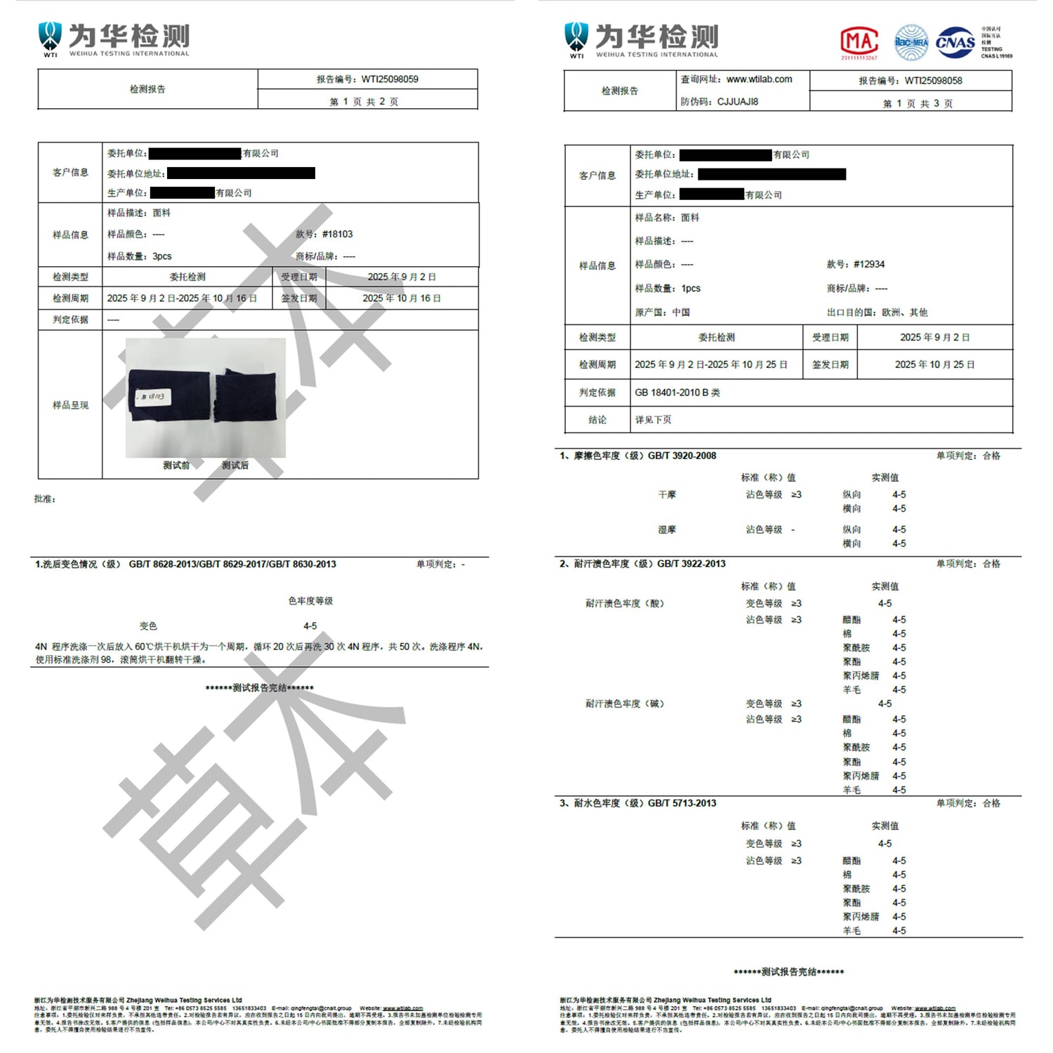 GB/T 8628/8629/8630 に準拠した “4N プログラム”で、洗濯50回(40℃)・乾燥機20回(60℃)のサイクルを行っても、色の退色や変色はごくわずか。日常的にカバーを洗っても、色味と風合いが長く保たれることが客観的データで確認されています。