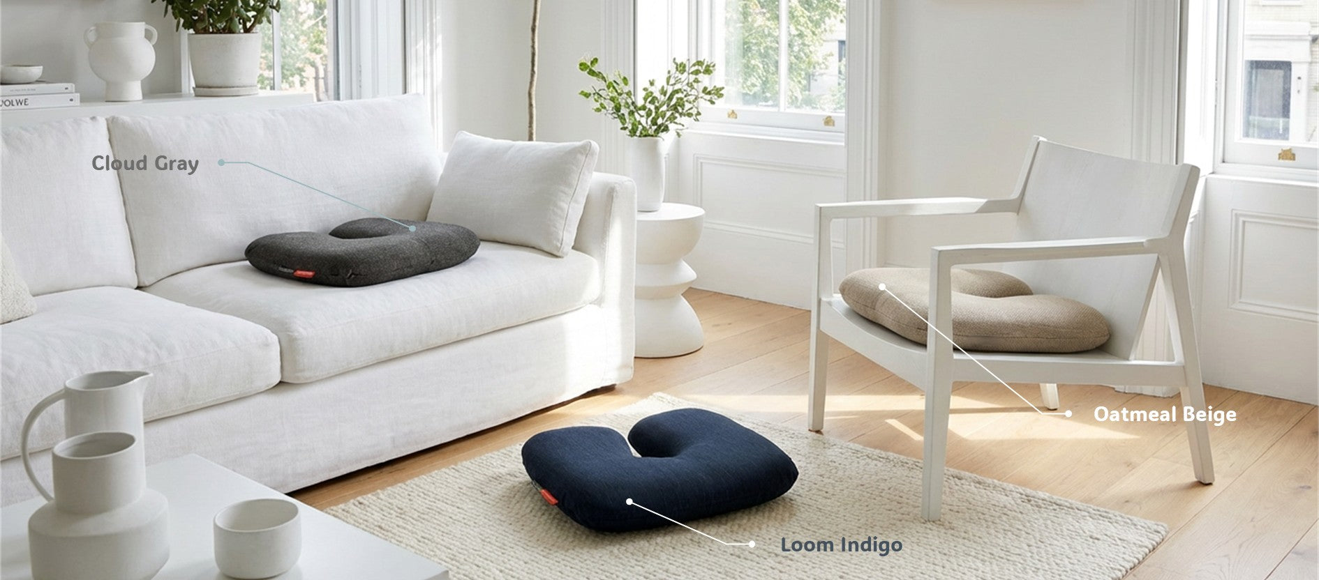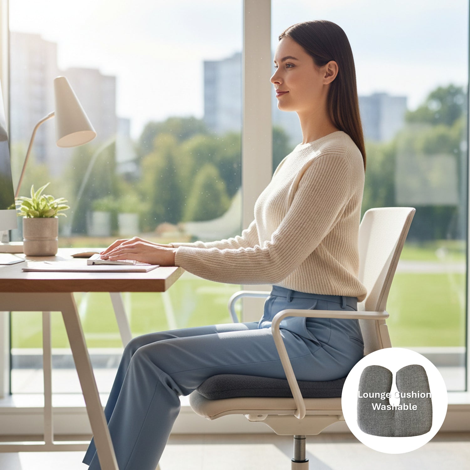 ・中央をU字にくり抜くことで尾骨・デリケートゾーンを浮かせ、ムレ・圧迫痛を大幅軽減。産後ケアやおしり周りの不安に悩む方、長時間デスクワーカーに最適。 - ラウンジ級の座り心地をどこでも