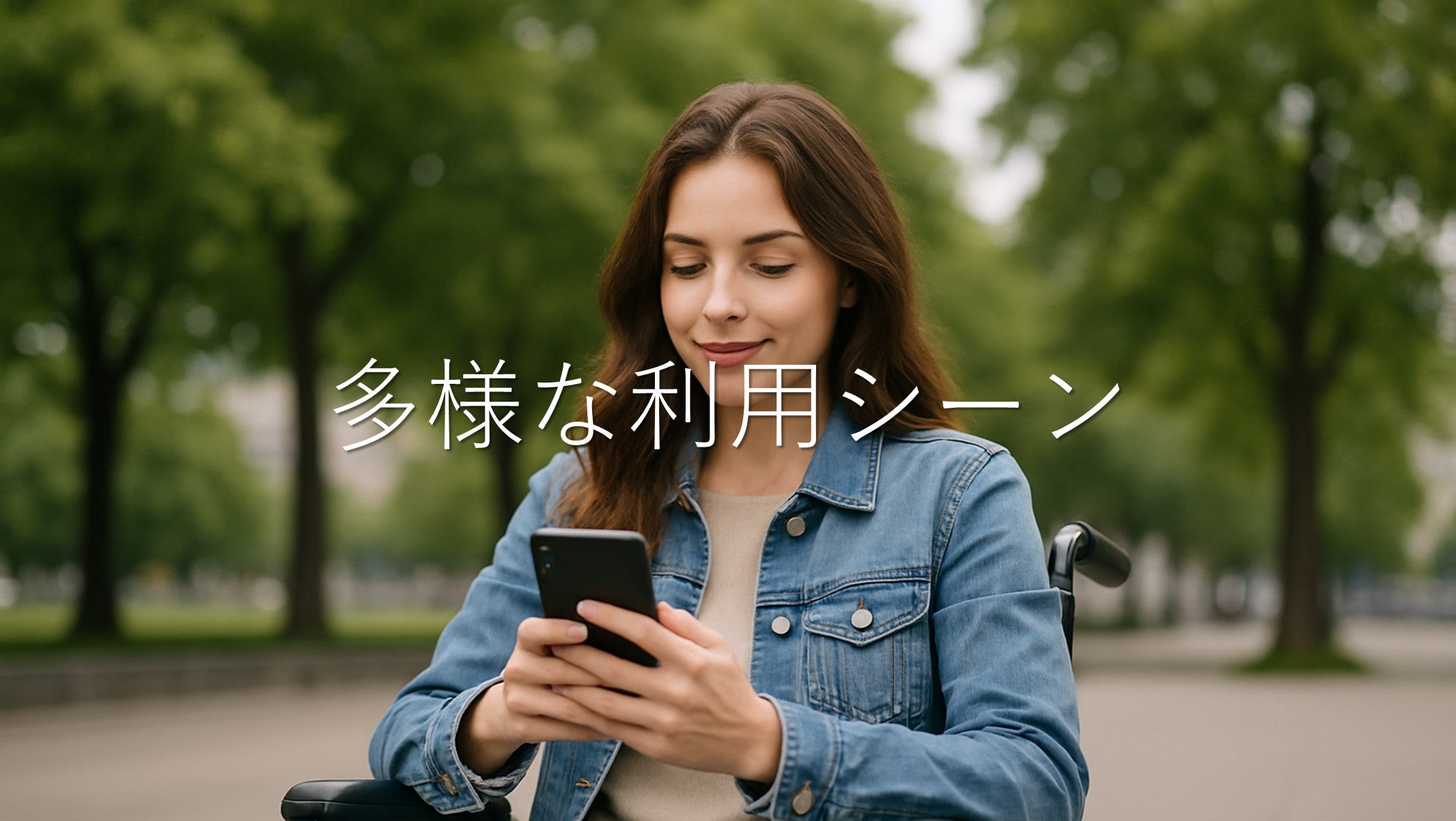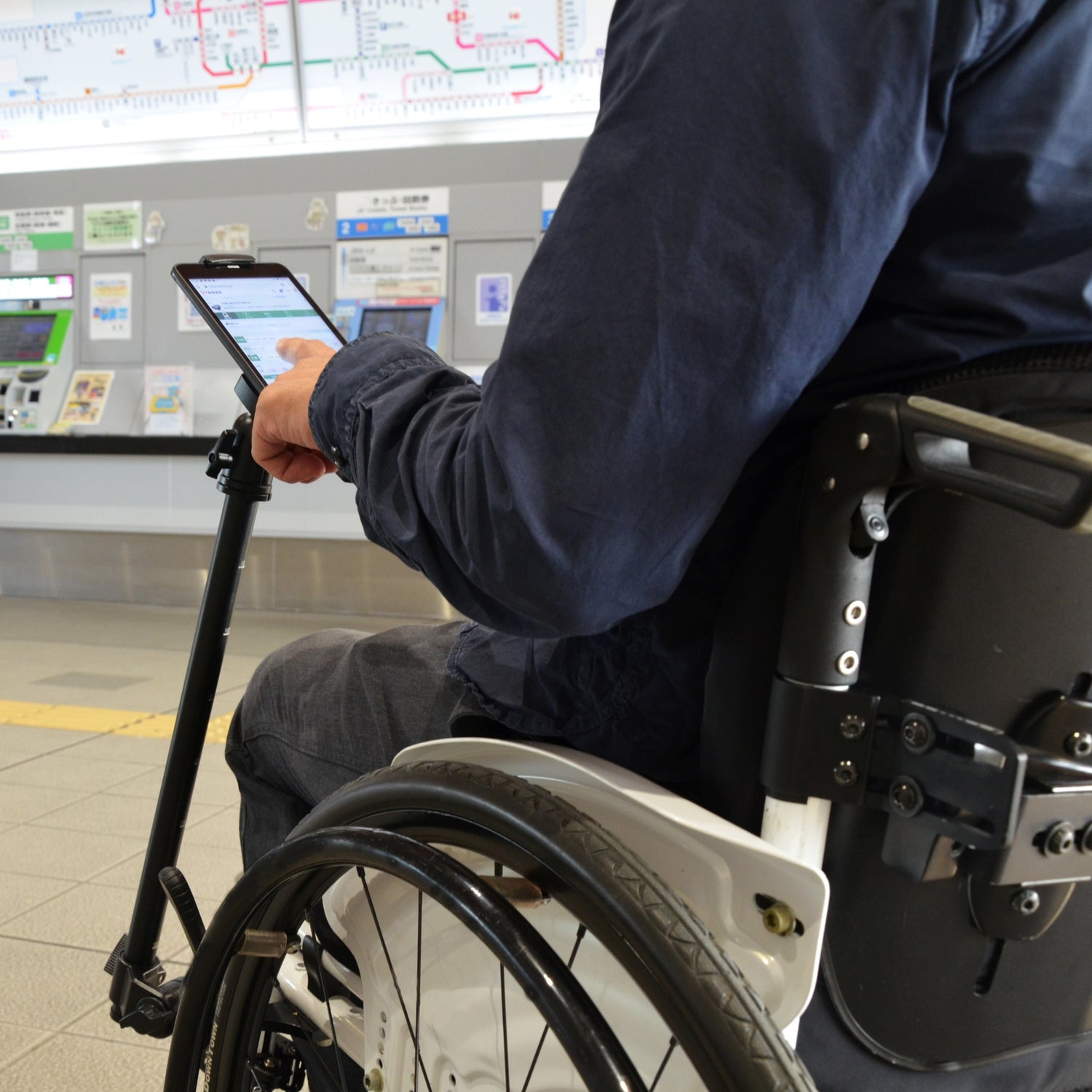 車いすにスマートフォンを簡単に取り付け、移動中も手軽にナビアプリや時刻表を確認。目的地まで安心してスムーズに移動できます。