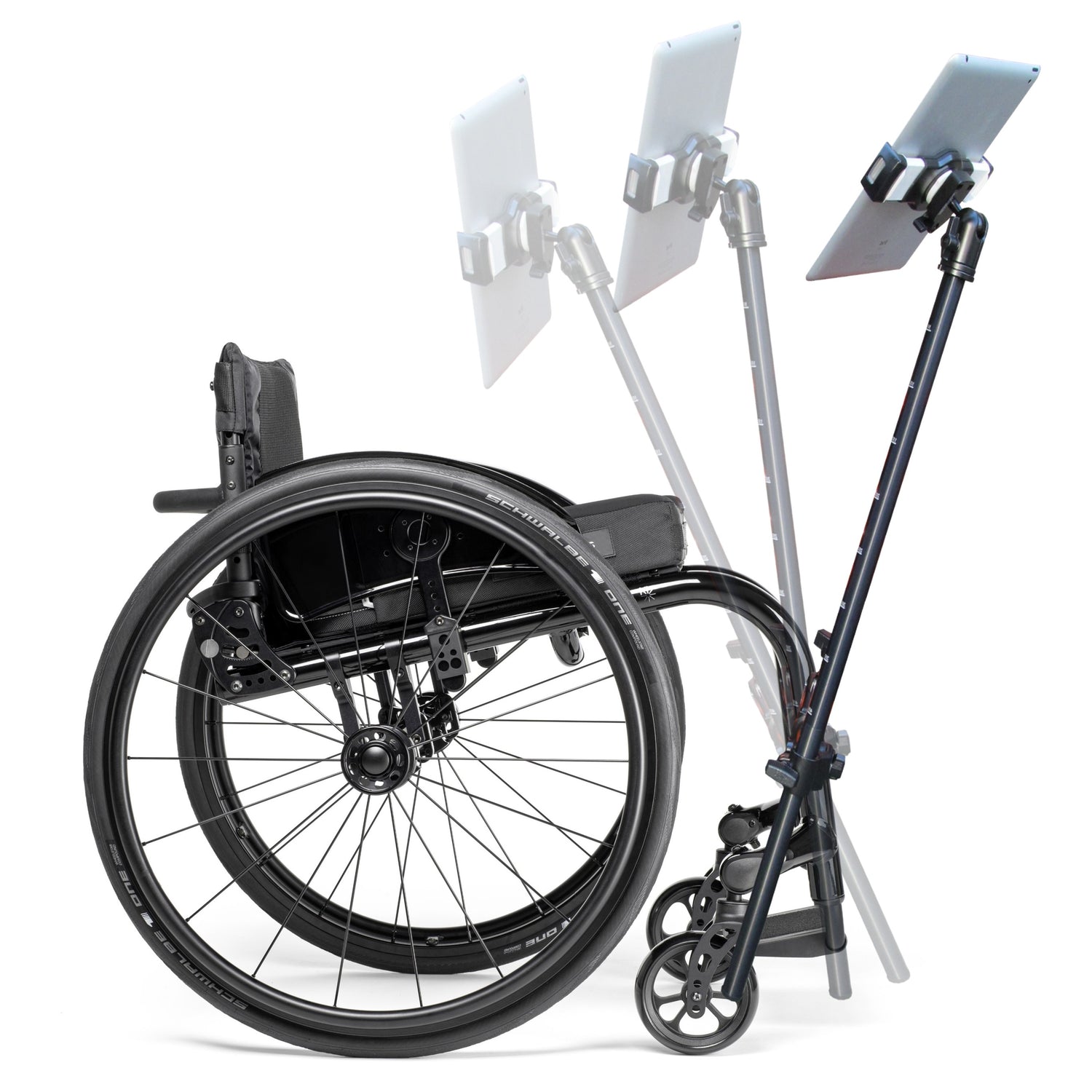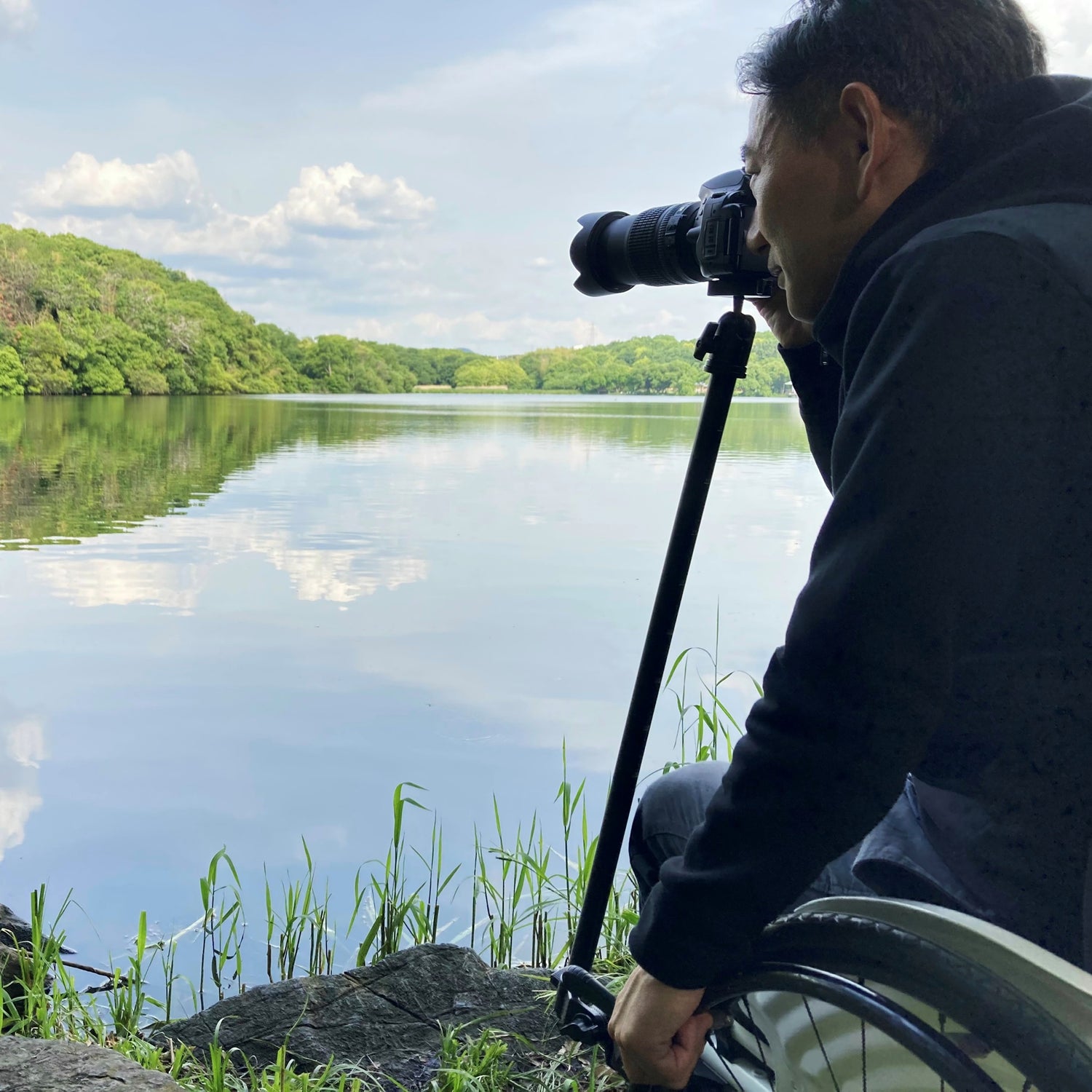 車いすにカメラをしっかり固定できるため、手ブレを抑えて片手でも安定した写真撮影が可能。三脚代わりとしても活躍します。