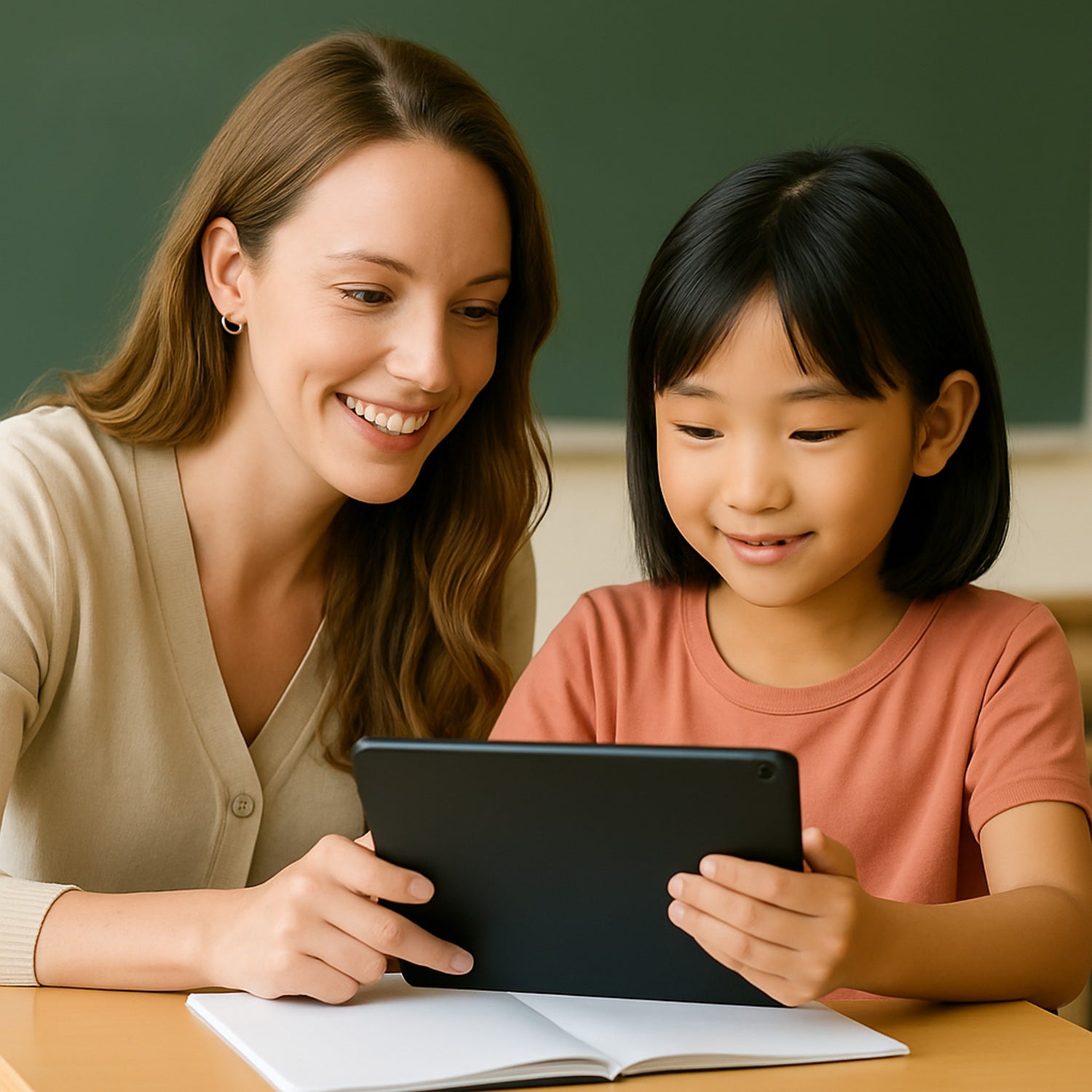 GIGAスクール構想とは、文部科学省が推進する「1人1台端末」と高速ネットワーク環境を全国の小・中学校に整備する取り組みです。タブレットなどのICT機器を活用し、多様な子ども達がそれぞれに合った学び方ができる教育環境を目指しています。