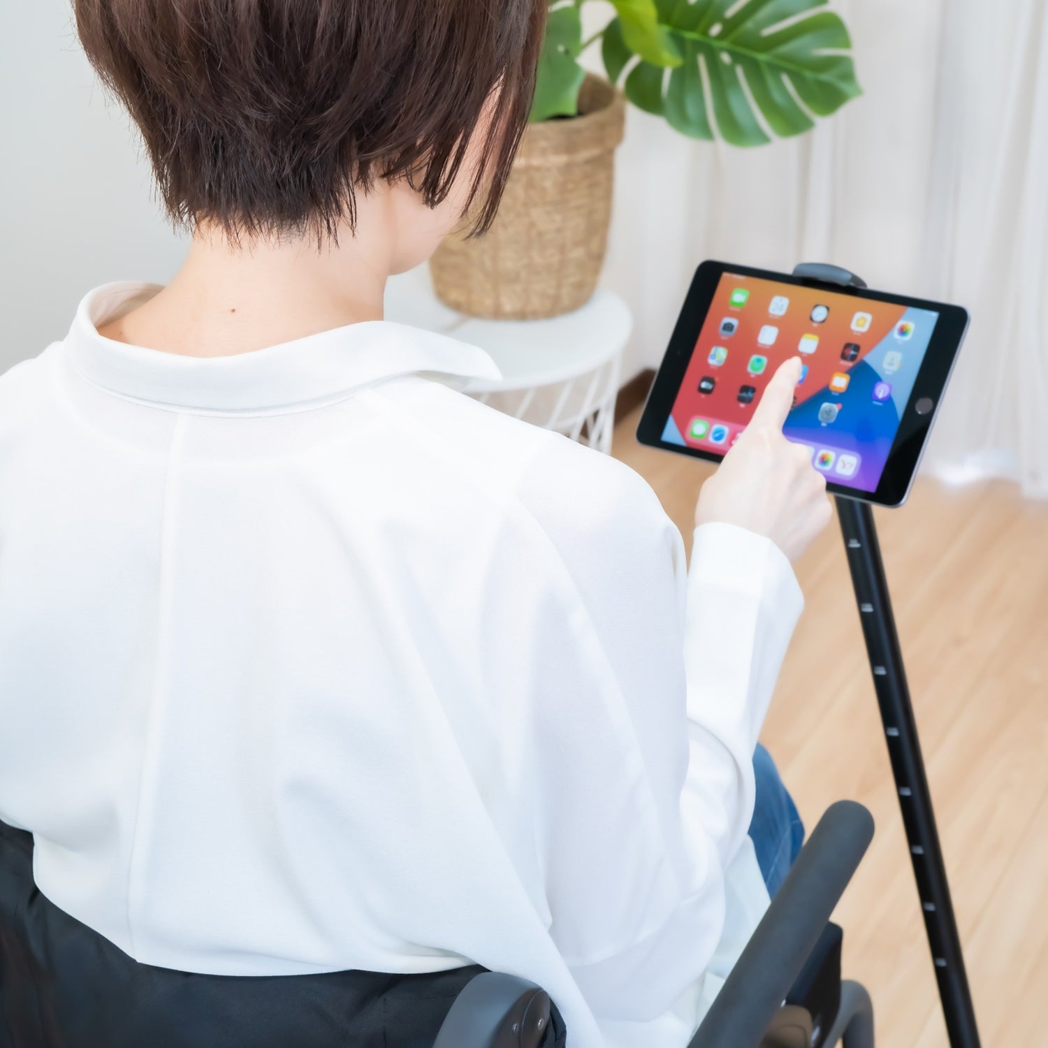 タブレットや教材を見やすい位置に固定できるため、支援学校などでの学習をしっかりサポートします。文部科学省が推進するGIGAスクール構想におけるデジタル教材を活用した新しい学び方にも最適です。