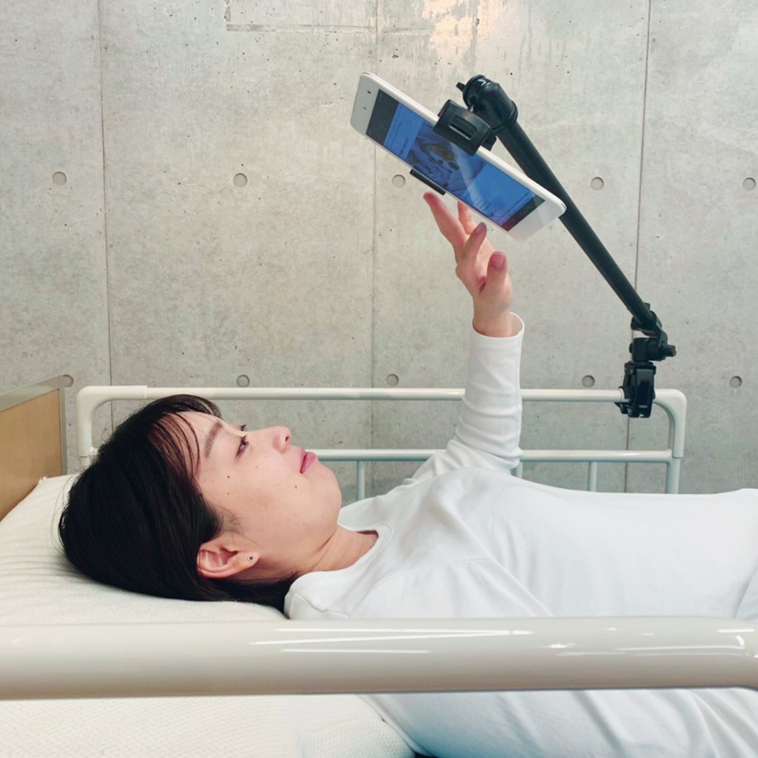 ベッドで横になったままでも、タブレットを目の前に固定できるので、動画視聴や読書が快適に。両手が自由になり、力を抜いてリラックスしながら楽しめます。